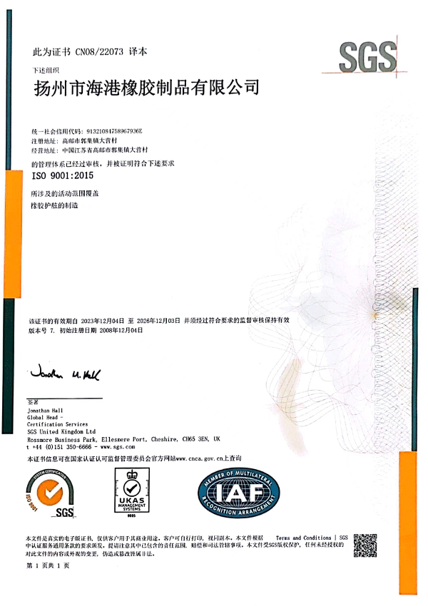 凡在海港橡膠購買的產(chǎn)品享受提供的終身維護(hù)服務(wù)。
